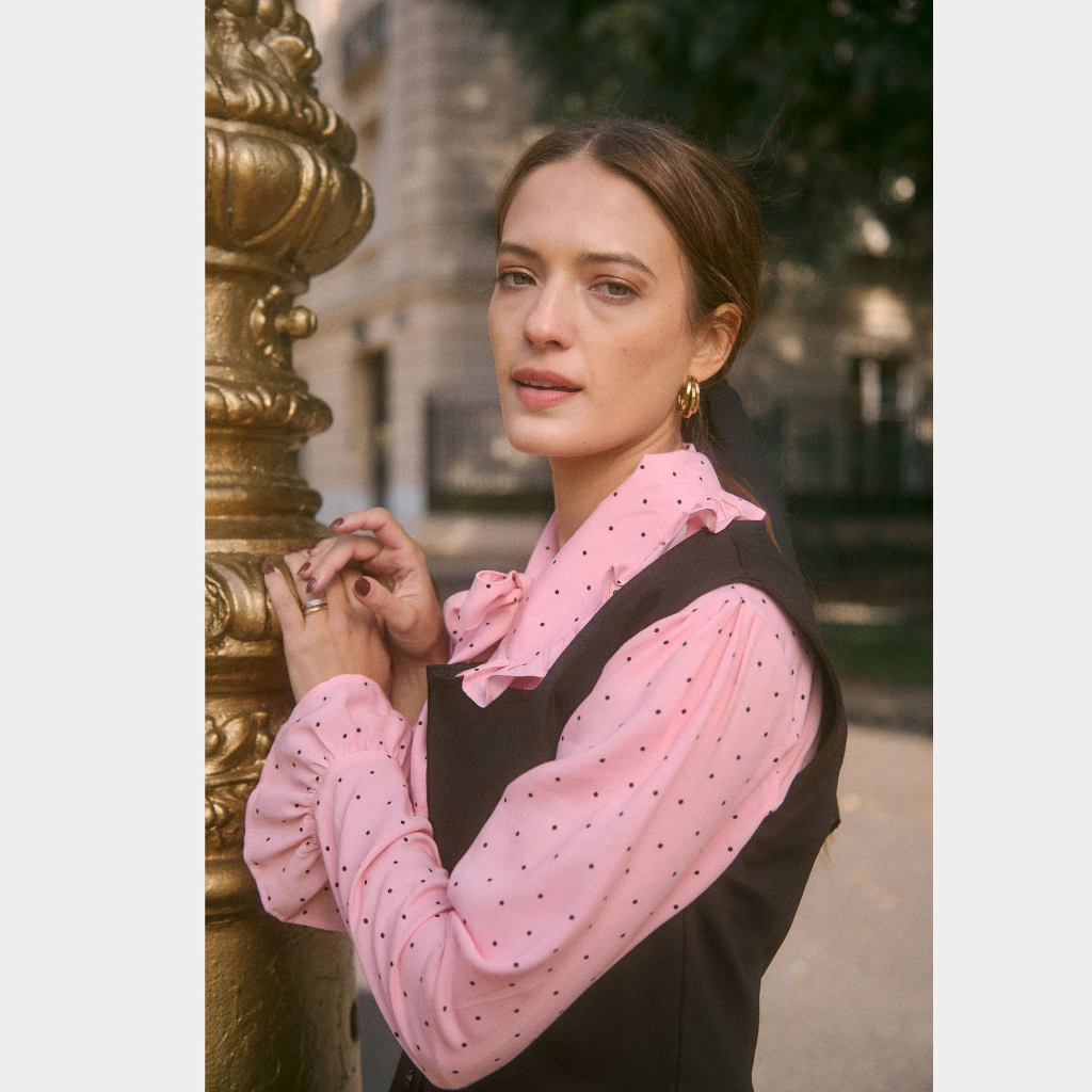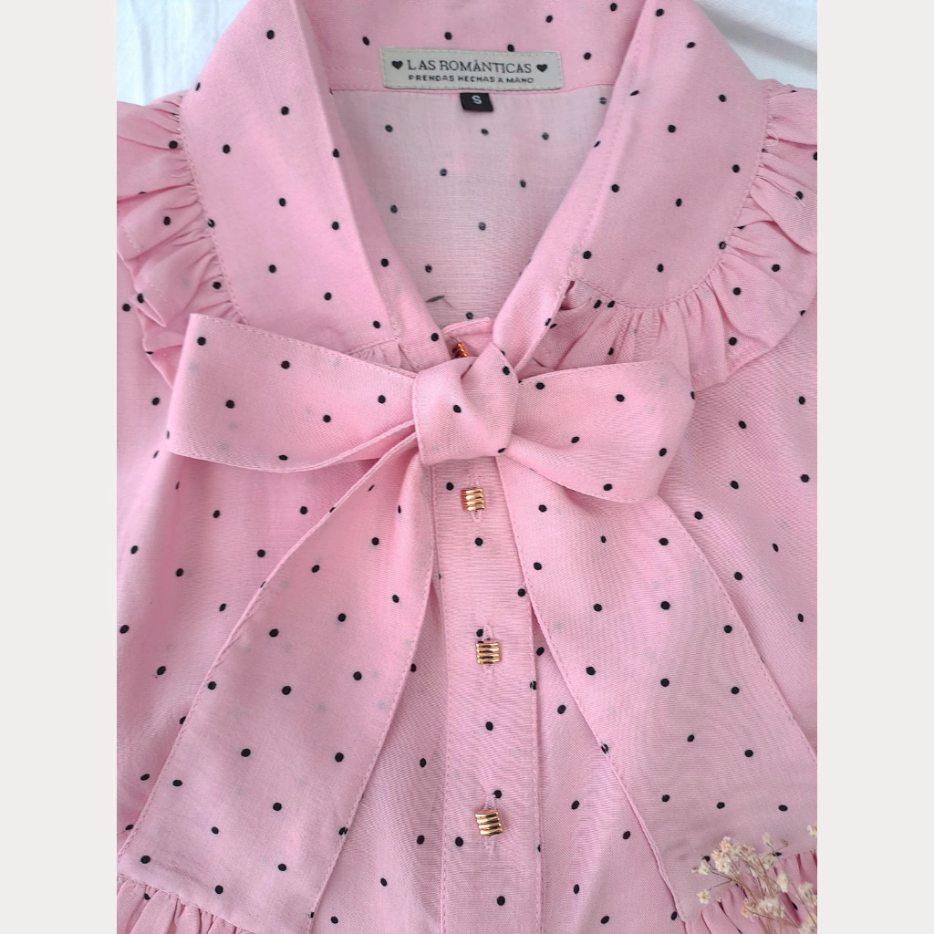 Camisa estampada Amelie tiene cuello lazo para atar con terminacion redonda y voladito todo alrededor. Pinzas de cintura y busto para darle entalle y unas pequeñas tablitas en el hombro que le dan un toque vintage especial. La cartera es abotonada con botoncitos dorados con textura!.En la parte trasera tiene pinzas de cintura.Las mangas son largas con terminacion de volados como puño.
