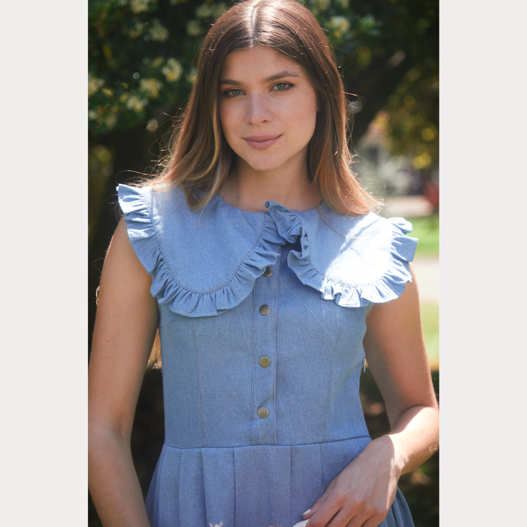 Confeccionado en denim 100% algodón con lavado industrial, que le otorga textura suave al tacto, gran durabilidad y comodidad en el uso.