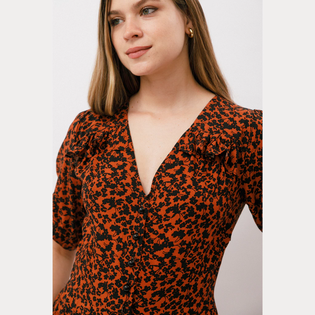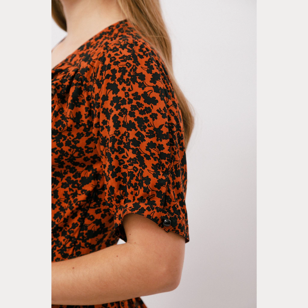 Confeccionado en fibrana estampada, fresca, de caída natural y textura muy suave.